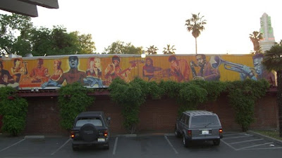 So we went to the erstaz Tower Records downtown (arguably the first location) which is now called R5 (and was opened by the same guy who founded Tower Records). A few days ago, some dude was beginning a mural on the side which now looks like this: