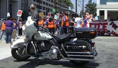 So the other day as I was minding my own business in L.A. ('cause if you don't mind your own business, they shoot you), throngs of people began pouring off of busses and onto the sidewalk near the intersection of Sepulveda and Santa Monica Blvd. (And by the way, you can click on any of these pictures to see a larger version)