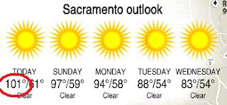 Speaking as a former long-sleeve-wearing, wool-uniform-even-in-the-summer-donning, marching member of the Sacramento Youth Band, I beseech you to cool off! I'm stuck here. Many of us are stuck here. We are all but naked before you, peeling off our wet perspiration-soaked rags, secreting salty, watery fluid from the glands in our skin - not to mention, sweating to death. We beg you, stay away from the One-oh-somethings!