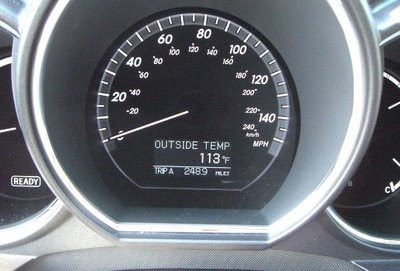 And I can't begin to tell you the near death experience I experienced one very hot day while snagging this picture of my dashboard for last summer's post entitled Hell Hath No Fury Like a Woman Scorched: