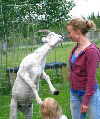 Sure hope someone gave the goat a breath mint. Ain’t nothin’ worse than kissin’ a goat with wild onion breath.