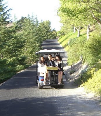 First we arrived near the groom parent's house where a team of valet guys swiped our cars and we were golfcarted up the hill...
