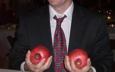 Apples and pomegranates all over the table. You're probably wondering if that fruit was real. Oh yeah, they were real. And they were spectacular.
