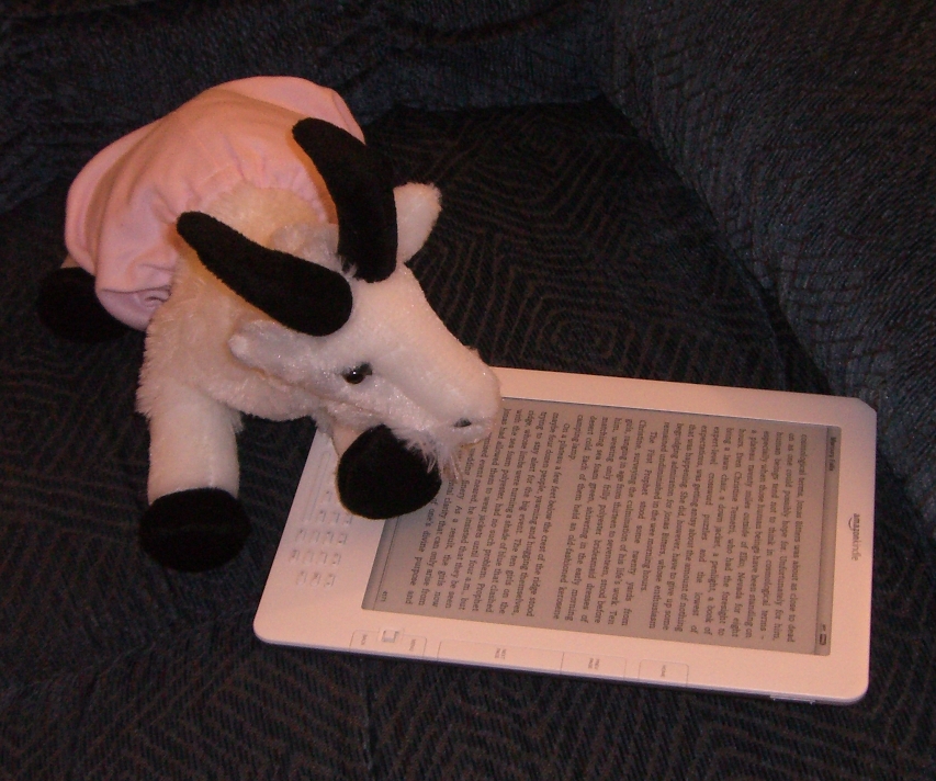 Lacy has no imagination and can't think outside the box and I tell her this, but she just shakes her stuffed head at me and sings to me as if for the 100th time the various praises about the Kindle. Like how you can subscribe to this very blog, Nanny Goats in Panties on it. Or, how you can get a 14 day free trial on all newspapers, magazines, and blogs, like this one, for example. Or how you can look at the beginning of books for free before you buy them.