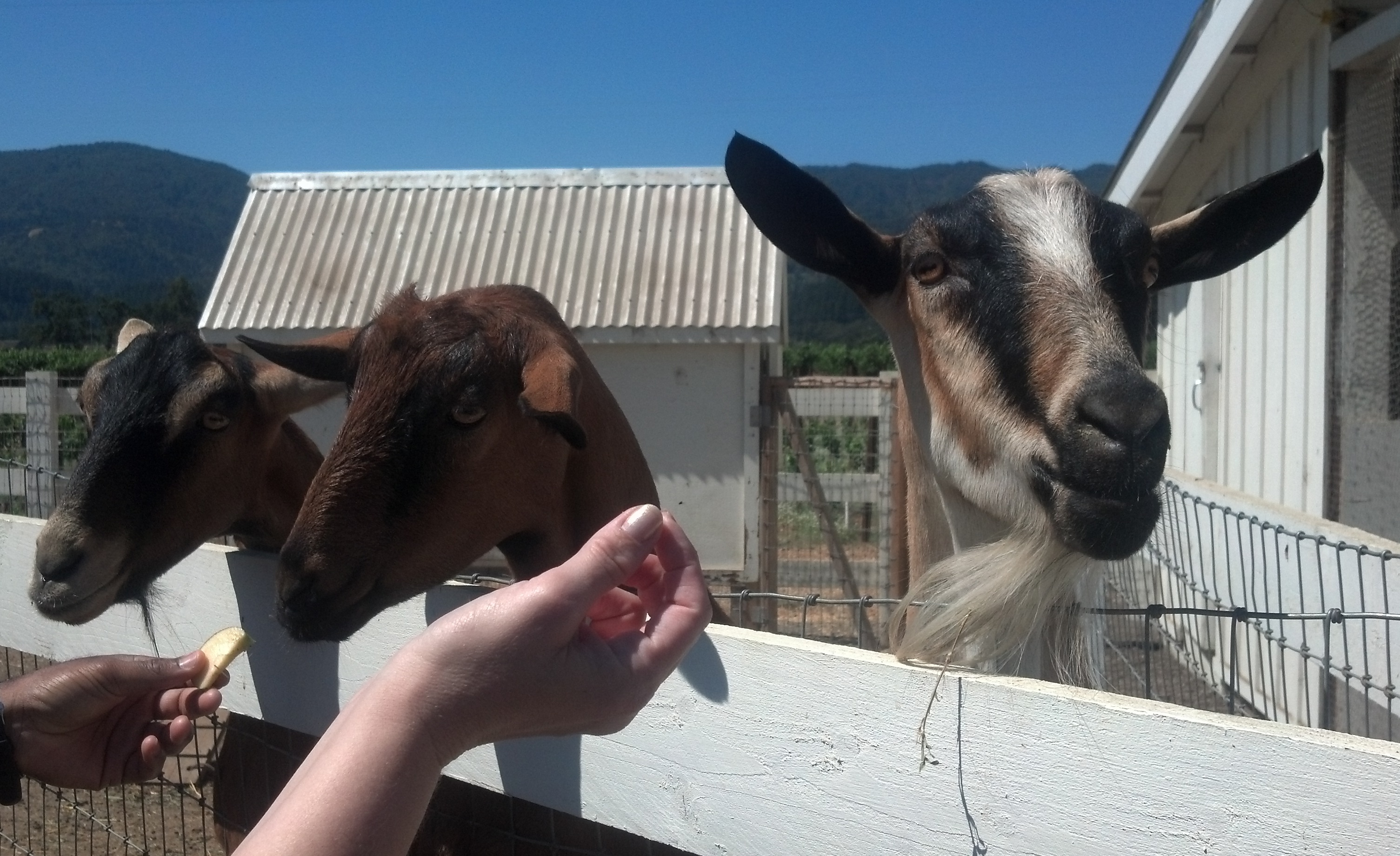 Meanwhile at the Raymond Winery, my sister and her friend Beth were feeding the goats that…uh….make the wine?