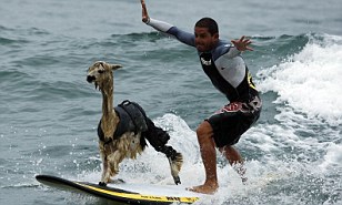 OMG, the goats are surfing. OK well alpacas started it but GET ON IT!!