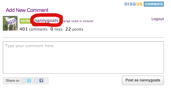 […] to work with the Disqus commenting system so that other readers can find your blog, you can read this excellent tutorial my friend Margaret of Nanny Goats […]