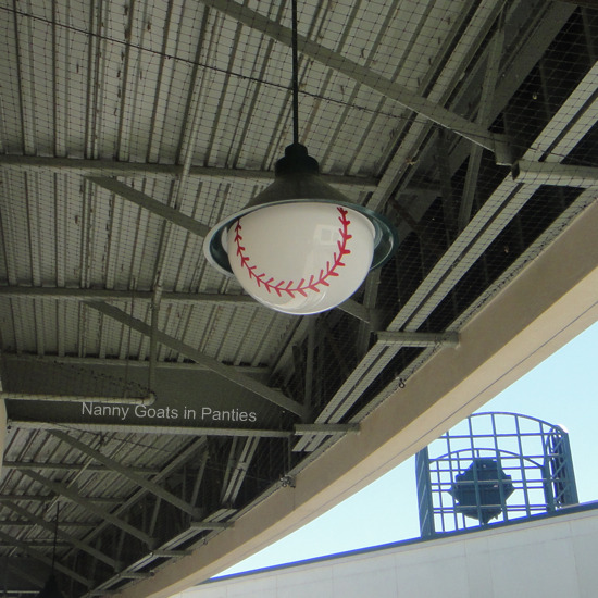 Imagine my excitement at the thought of not only watching fifteen men in tight uniforms out on the field batting their balls around, but watching them from a fancy schmancy suite. Or sky box. Or VIP lounge. Or whatever you call it.