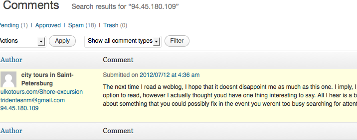 Anyway, these flattering spammers may be starting to adopt new tactics, as I recently received my first negative spam comment: