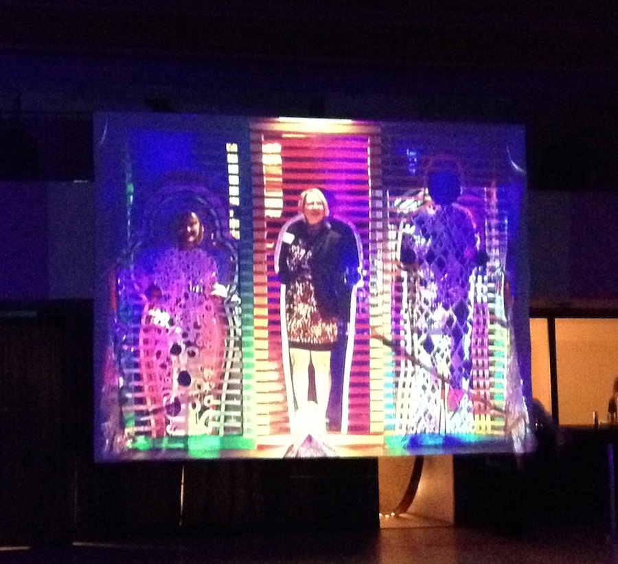 The Verge Center provided a couple installations for the party, one of which was interactive where you stood behind a glass wall with cutouts for your head and your images were projected onto a screen on another far wall in the ballroom.